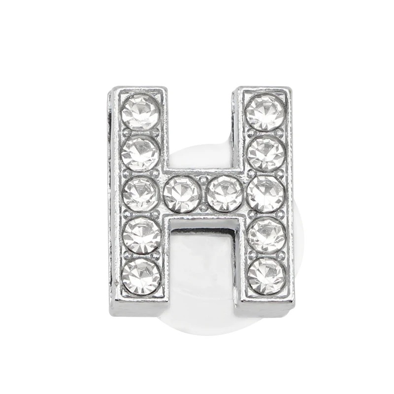 Kamínková ozdoba na crocsy písmeno H 2,5–3 cm PVC stříbrná dekorace do bot pro personalizaci obuvi a tvorbu iniciál