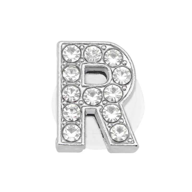 Kamínková ozdoba na crocsy písmeno R 2,5–3 cm PVC stříbrná dekorace do bot pro personalizaci obuvi a zvýraznění stylu
