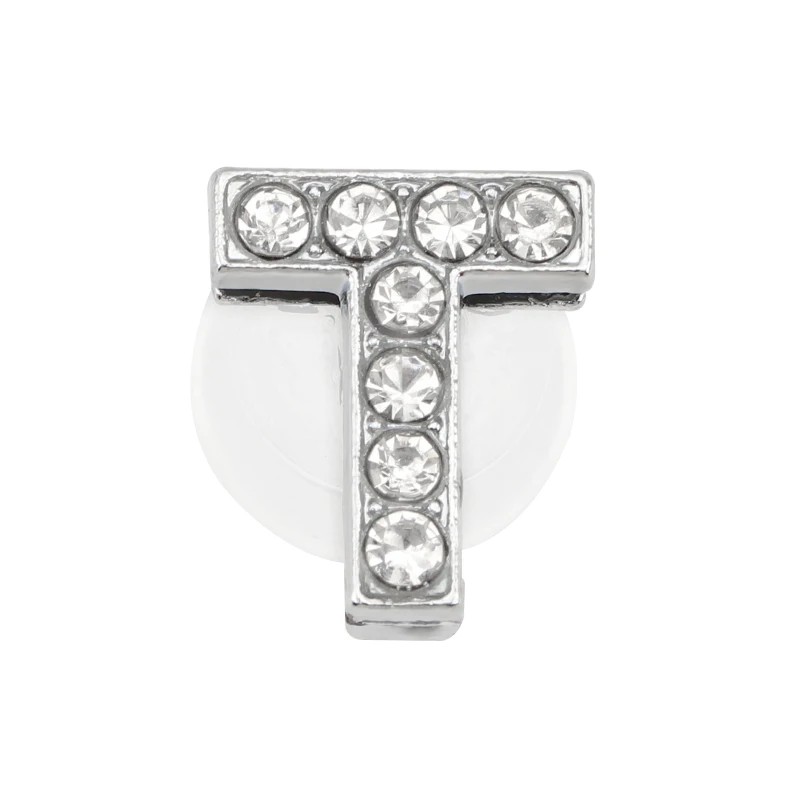 Kamínková ozdoba na crocsy písmeno T 2,5–3 cm PVC stříbrná dekorace do bot pro personalizaci obuvi a doplnění stylu