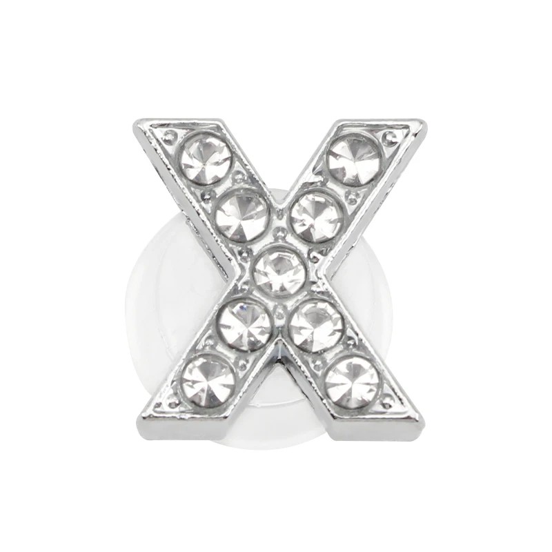 Kamínková ozdoba na crocsy písmeno X 2,5–3 cm PVC stříbrná dekorace do bot pro personalizaci obuvi a doplnění stylu