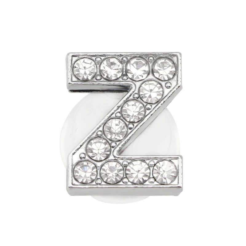 Kamínková ozdoba na crocsy písmeno Z 2,5–3 cm PVC stříbrná dekorace do bot pro personalizaci obuvi a doplnění detailu
