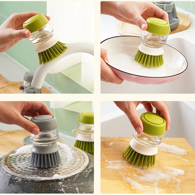 Tento kuchyňský kartáč s dávkovačem je ideální volbou pro rychlé, pohodlné a hygienické mytí nádobí bez zbytečného plýtvání saponátem.