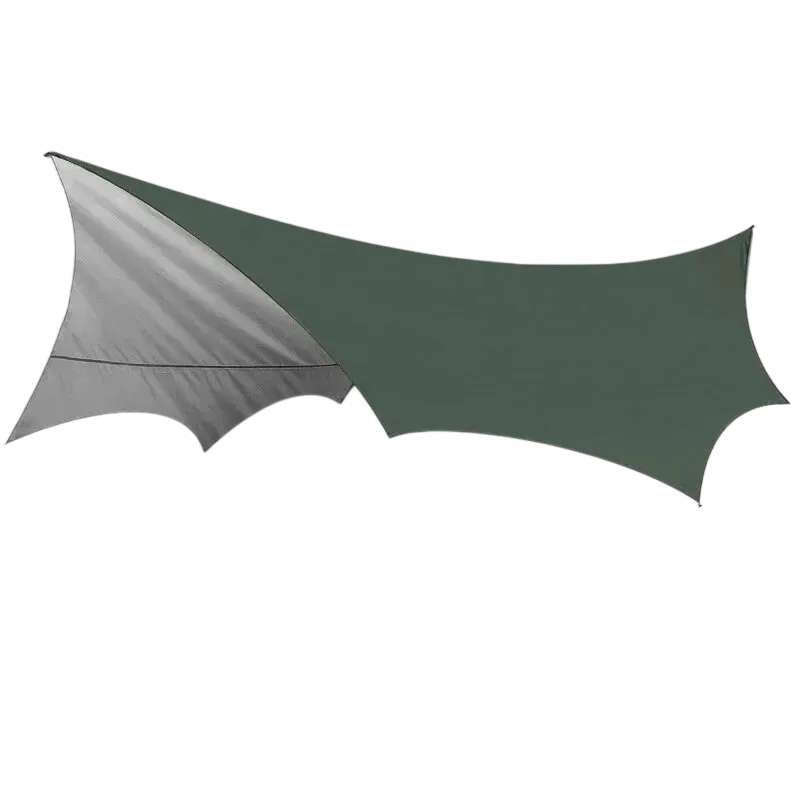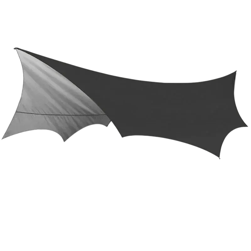 Velká plocha umožňuje pohodlné zakrytí prostoru pro odpočinek, vaření nebo uložení vybavení. Plachta funguje jako venkovní sluneční clona, která poskytuje stín během slunečných dní, zároveň však slouží i jako ochrana proti dešti díky nepromokavému provedení.