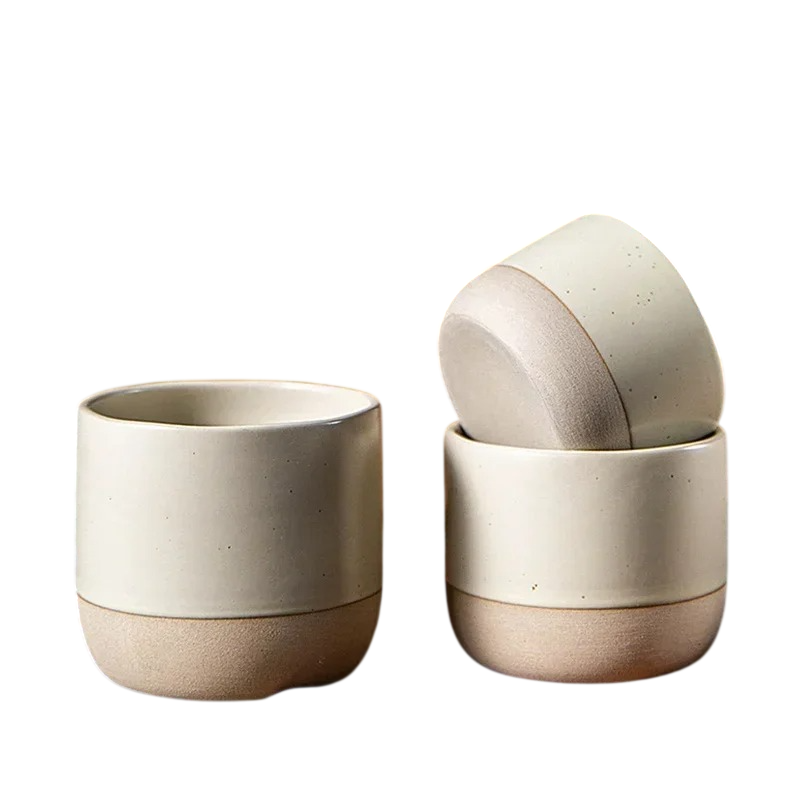Keramický šálek bez ucha pro každodenní pití kávy nebo čaje. Jednoduchý design a přírodní barevné provedení se hodí do moderní kuchyně. Celý popis