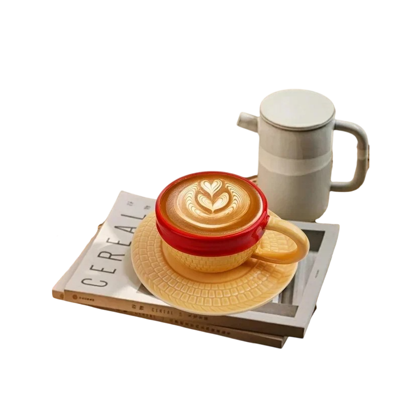 Úvodní strana Úvodní strana Dům a domácí potřeby Do Kuchyně Stolování Hrnky Keramické a porcelánové hrnky Keramický hrneček s podšálkem 250 ml, šálek na kávu a čaj z keramiky žluto-červený s uchem pro domácí i kancelářské použití