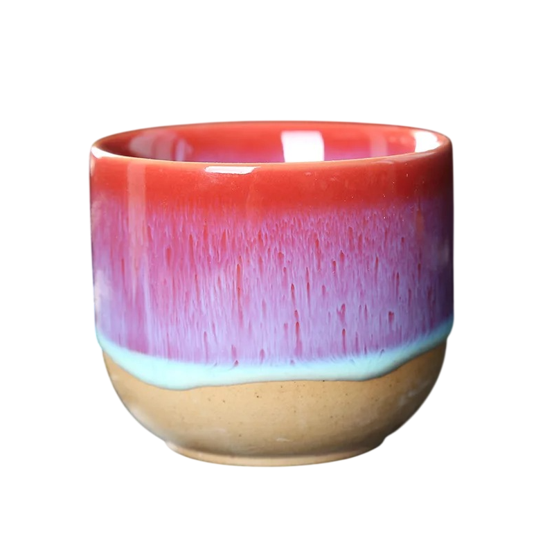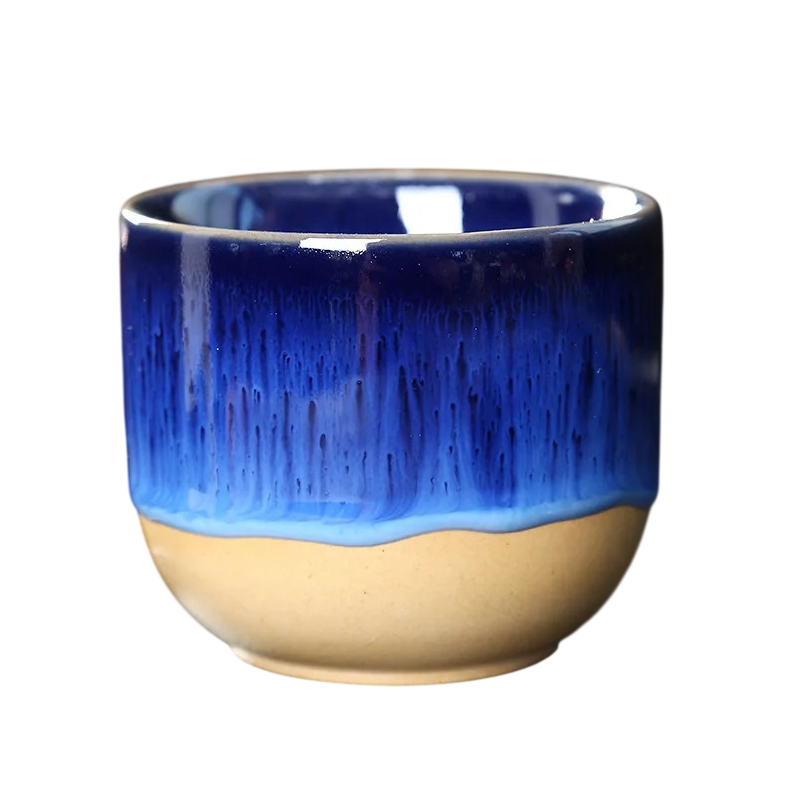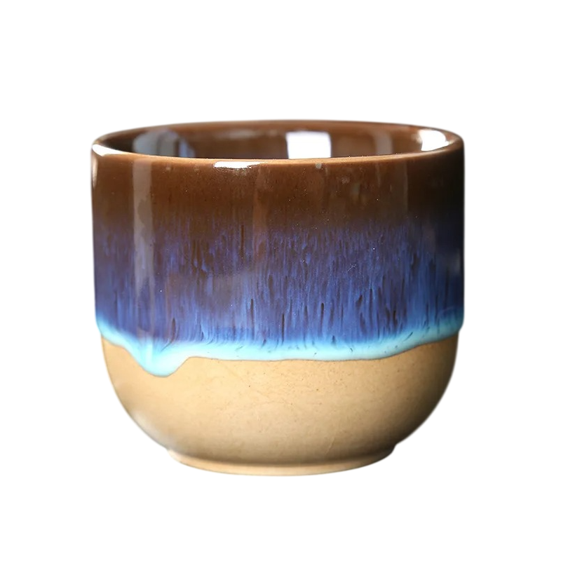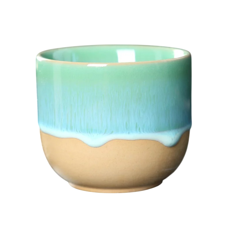 Minimalistické provedení bez ouška působí jednoduše a funkčně. Zaoblený tvar umožňuje pohodlné držení přímo v ruce. Povrch hrnku je hladký a doplněný dvoubarevným provedením, kde horní část přechází do spodní v odlišném odstínu. Tento detail dodává hrnku zajímavý vzhled.