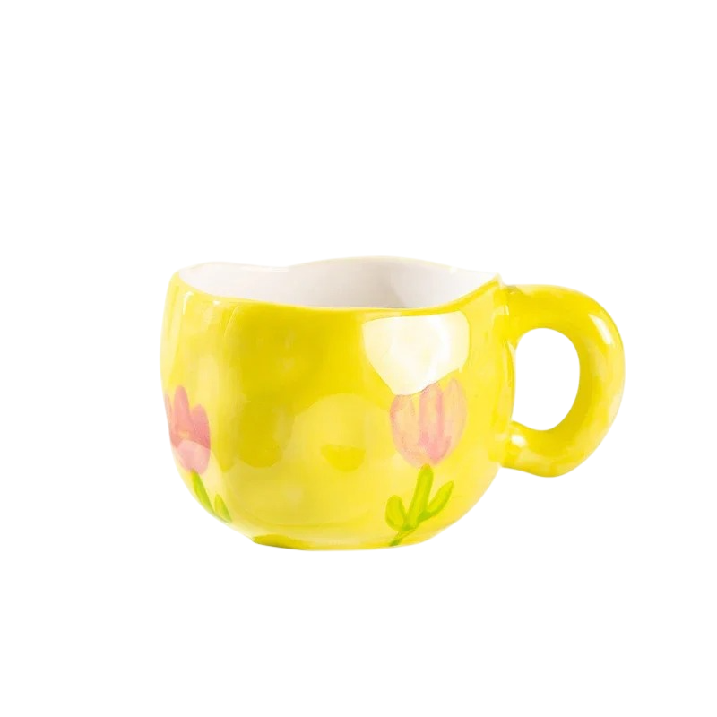 Keramický hrnek s květinovým motivem žlutý 300 ml rozměry 9,5 × 7 cm dekorativní provedení pro kávu čaj i každodenní použití