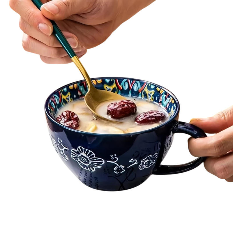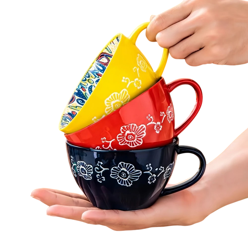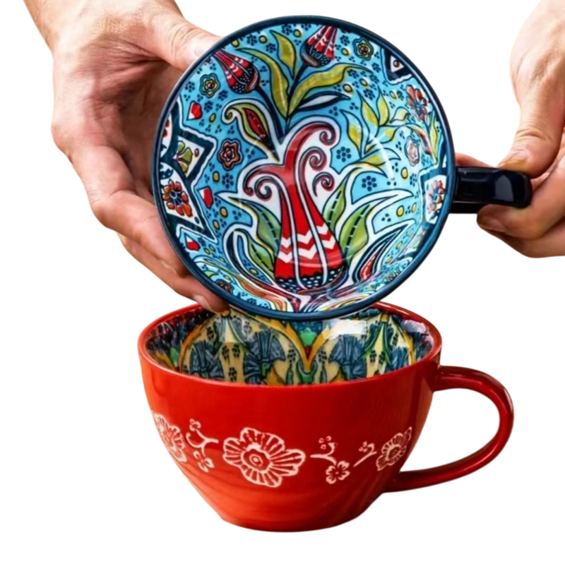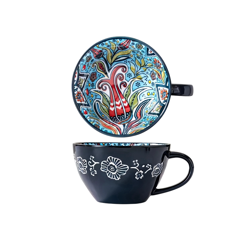 Úvodní strana Úvodní strana Dům a domácí potřeby Do Kuchyně Stolování Hrnky Keramické a porcelánové hrnky Keramický hrnek s vnitřním malováním a kytkovaným motivem 600–700 ml keramika 15 × 12,5 × 7,4 cm na kávu čaj i velké nápoje