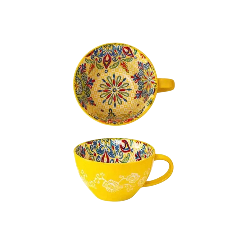 Keramický hrnek s vnitřním malováním a kytkovaným motivem 600–700 ml keramika 15 × 12,5 × 7,4 cm na kávu čaj i velké nápoje