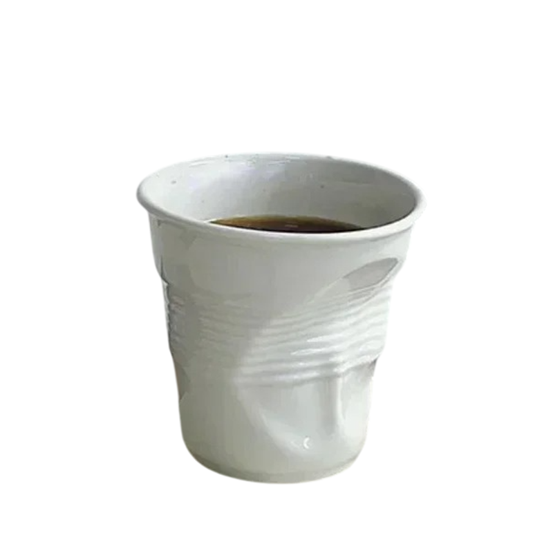 Keramický hrnek zmuchlaný tvar 200 ml keramika bílý originální design na kávu čaj i menší nápoje do domácnosti i kanceláře