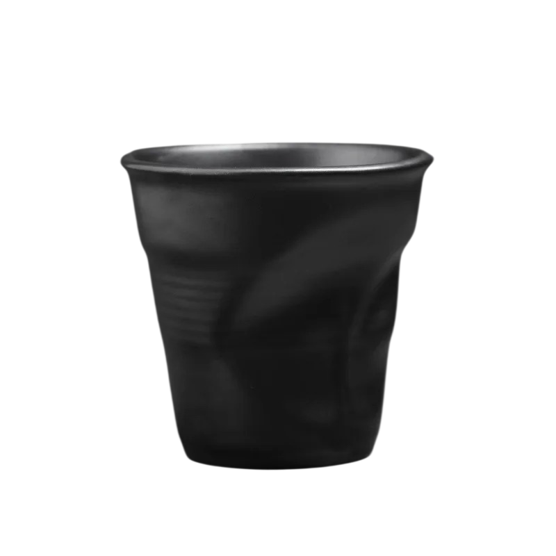 Malý keramický hrnek se zmuchlaným designem. Ideální na espresso nebo degustační nápoje, zaujme kompaktní velikostí i vzhledem. Celý popis