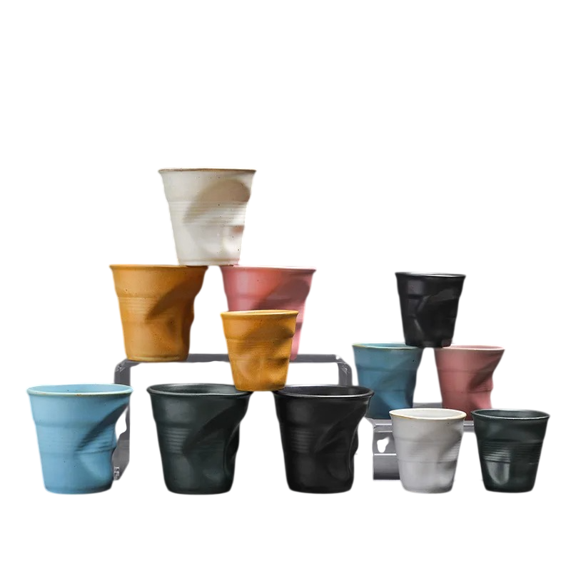 Keramický mini hrnek zmuchlaný tvar 70–90 ml keramika malý šálek na espresso kávu degustační nápoje do domácnosti i kanceláře