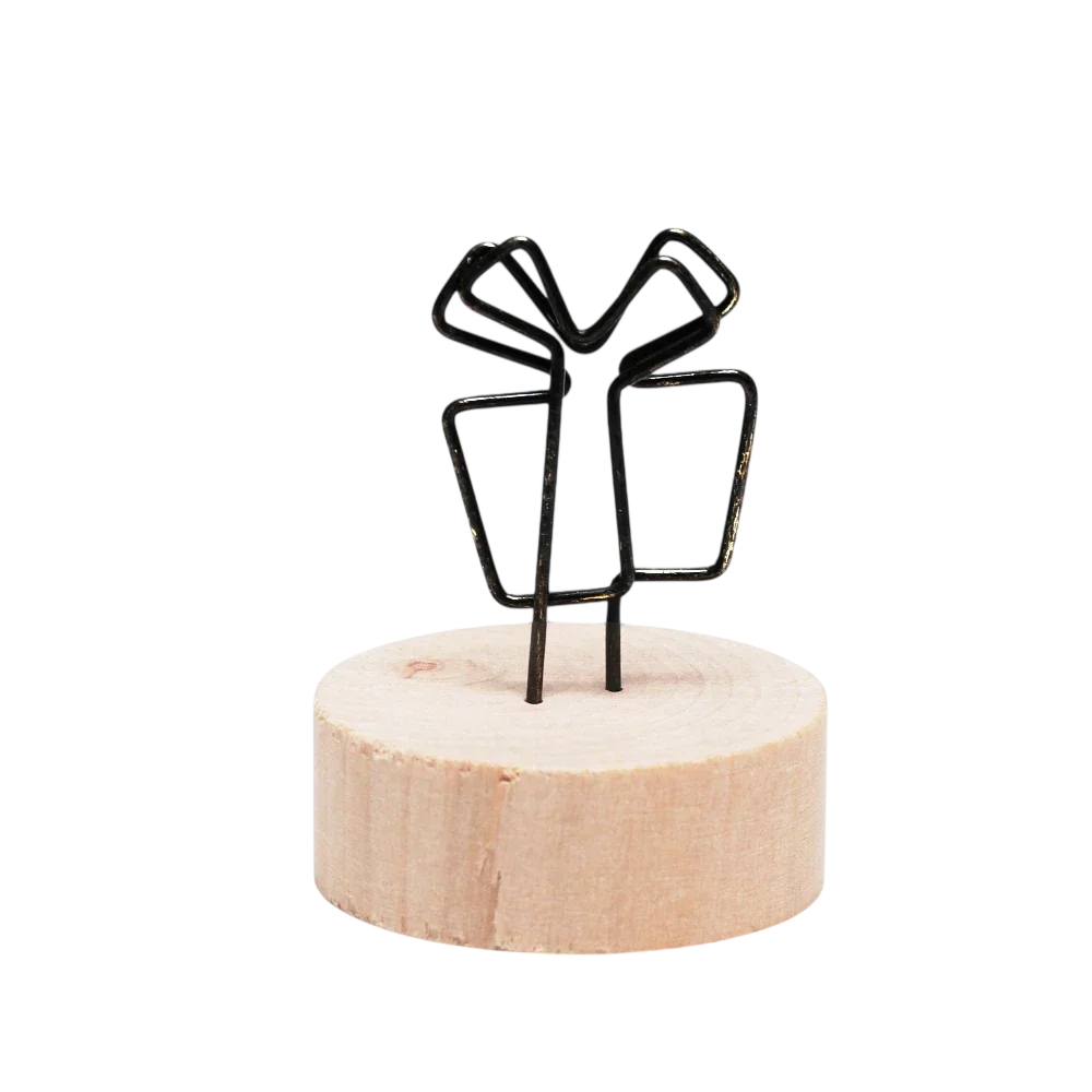Stojánek na fotografie ve tvaru dárku s kovovým klipem a dřevěným podstavcem. Praktický doplněk pro snímky i poznámky v interiéru. Celý popis