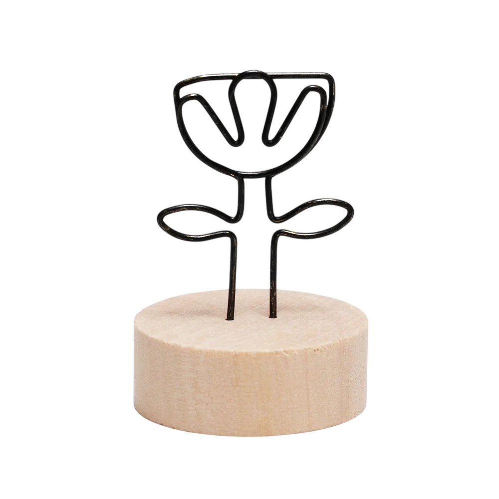 Stojánek na fotografie ve tvaru květiny s kovovým klipem a dřevěným podstavcem. Praktický doplněk pro snímky i poznámky do interiéru. Celý popis