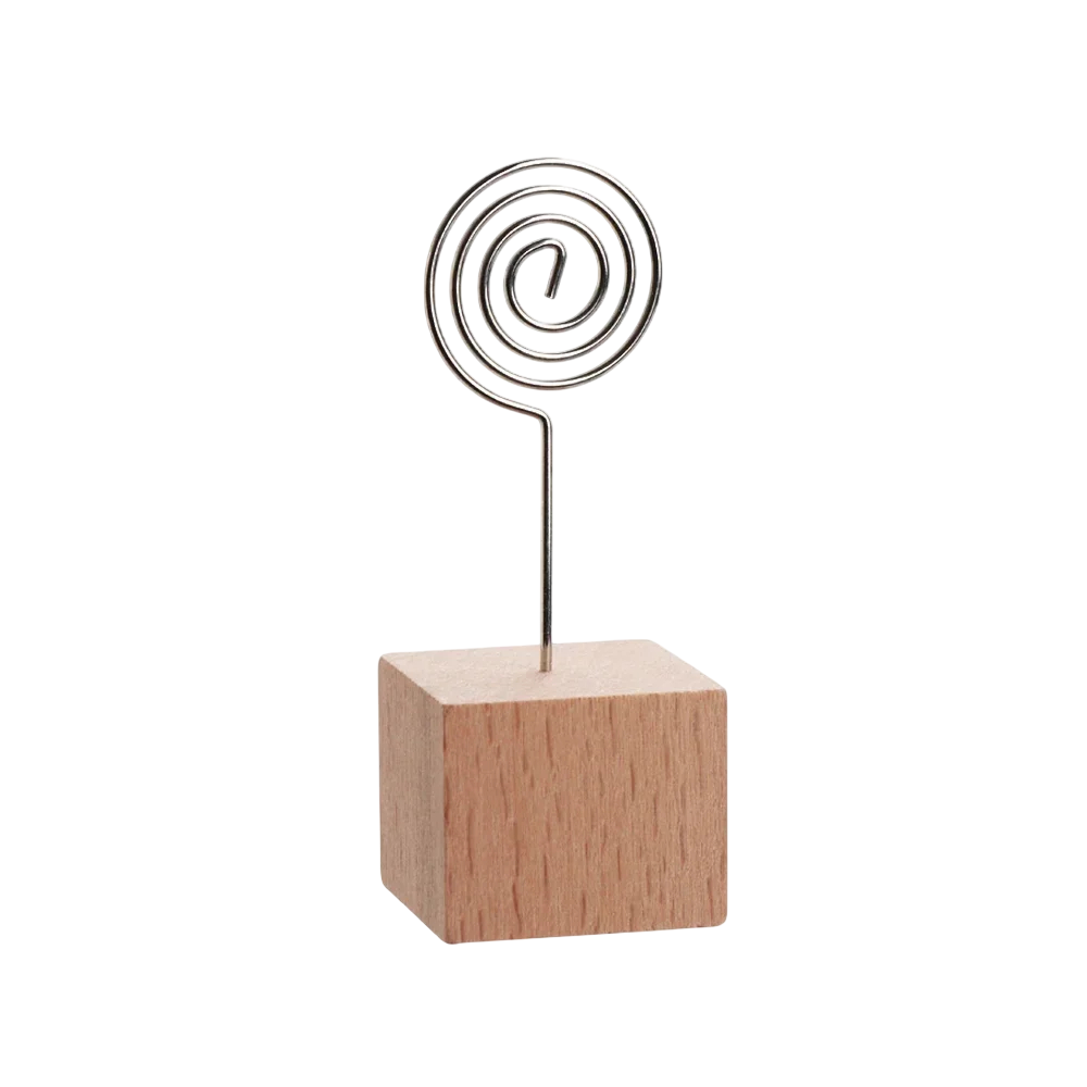 Klip na fotografie ve tvaru lízátka představuje praktický doplněk pro uchycení fotografií, poznámek nebo drobných lístků. Kovový držák doplněný o dřevěný krychlový podstavec vytváří jednoduchý a přirozený design vhodný do různých interiérů. Díky kompaktním rozměrům lze stojánek umístit na pracovní stůl, polici nebo komodu, kde pomůže udržet důležité informace na očích. Konstrukce klipu umožňuje snadné vložení i výměnu obsahu bez zbytečné manipulace. Minimalistické provedení nepůsobí rušivě a dobře zapadne mezi ostatní dekorace.