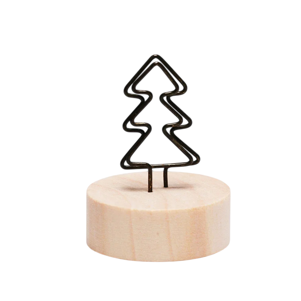 Klip na fotografie ve tvaru stromku je určen pro jednoduché vystavení snímků v interiéru. Kombinace kovového držáku a dřevěného podstavce vytváří praktické řešení pro každodenní použití. Díky kompaktní velikosti se hodí na pracovní stůl, komodu nebo poličku. Konstrukce umožňuje snadné uchycení fotografie bez potřeby rámování. Tento držák fotografií slouží jako drobná dekorace do bytu.