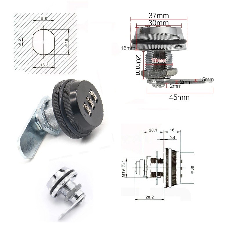Kombinační vačkový zámek na skříňku 20 mm 3místný kód bezklíčový pro nábytek schránky a dveře tloušťka 1–13 mm