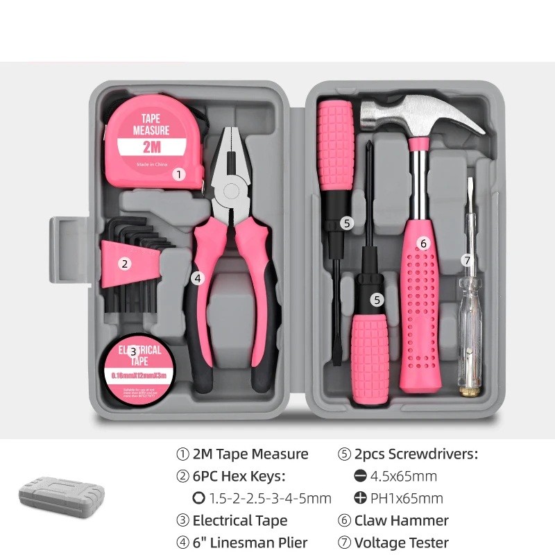 Úvodní strana Úvodní strana Hobby a zahrada Nářadí Ruční nářadí Sady ručního nářadí Kompaktní sada nářadí Hi-Spec 13 ks s kladivem 2 m metrem šroubováky kleštěmi růžovo černá pro domácí opravy a údržbu