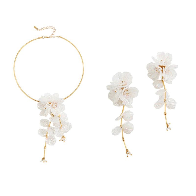 Tato výrazná šperková sada spojuje punkovou energii s elegantním květinovým motivem a vytváří nepřehlédnutelný módní doplněk pro ženy, které chtějí vyniknout. Náhrdelník o délce 14 cm a visací náušnice o délce 13 cm tvoří dokonale sladěný celek, který zvýrazní dekolt i linii krku. Kreativní design působí odvážně, ale zároveň si zachovává ženský a elegantní charakter. Výrazný květinový motiv v punkovém stylu dodává outfitu originalitu a osobitost. Tato sada je ideální volbou na párty, festival, koncert nebo stylovou společenskou událost.