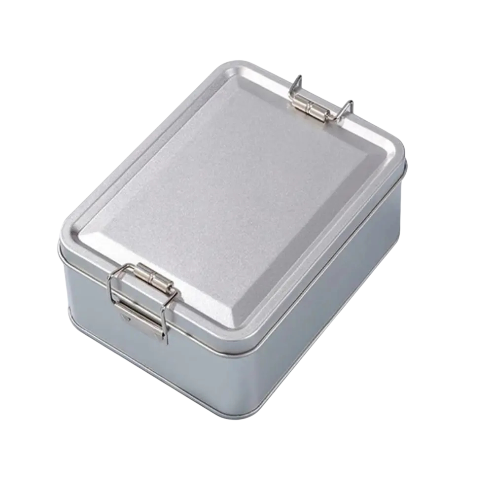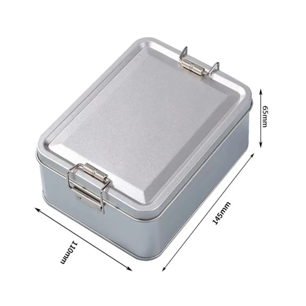 Kovová dóza na sušenky s víkem 14,5×11×6,5 cm plechová obdélníková krabička s klipovým uzávěrem úložný box na potraviny a drobnosti