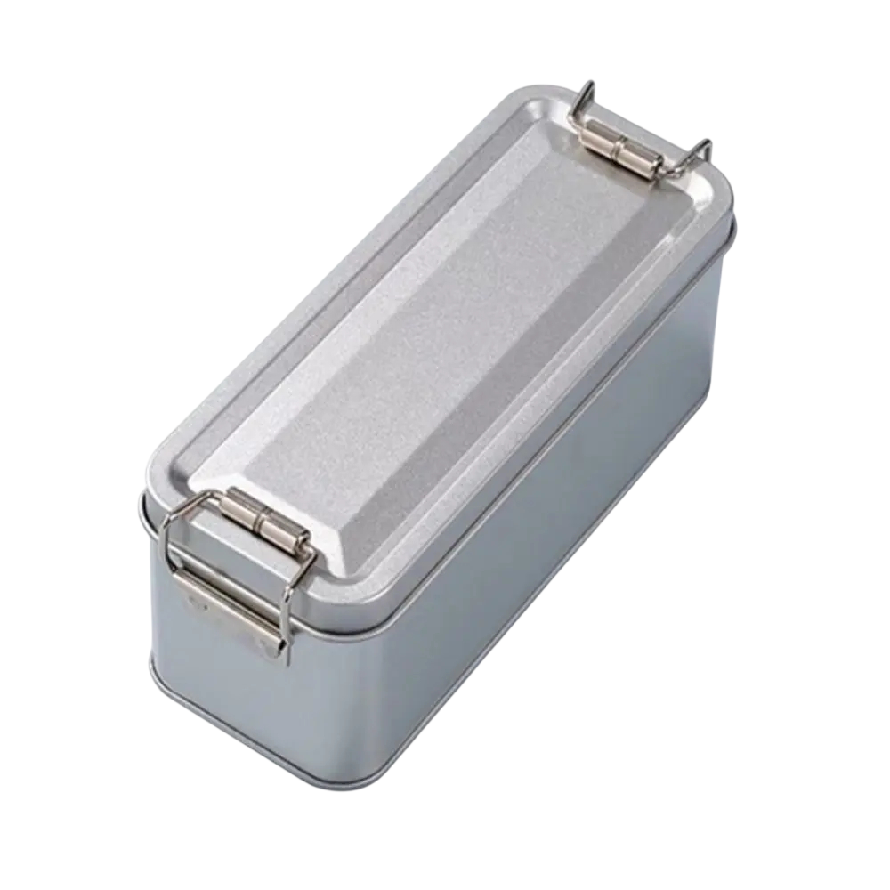 Kovová dóza na sušenky s víkem 15×6×6,5 cm plechová obdélníková krabička s klipovým uzávěrem úložný box na potraviny a drobnosti