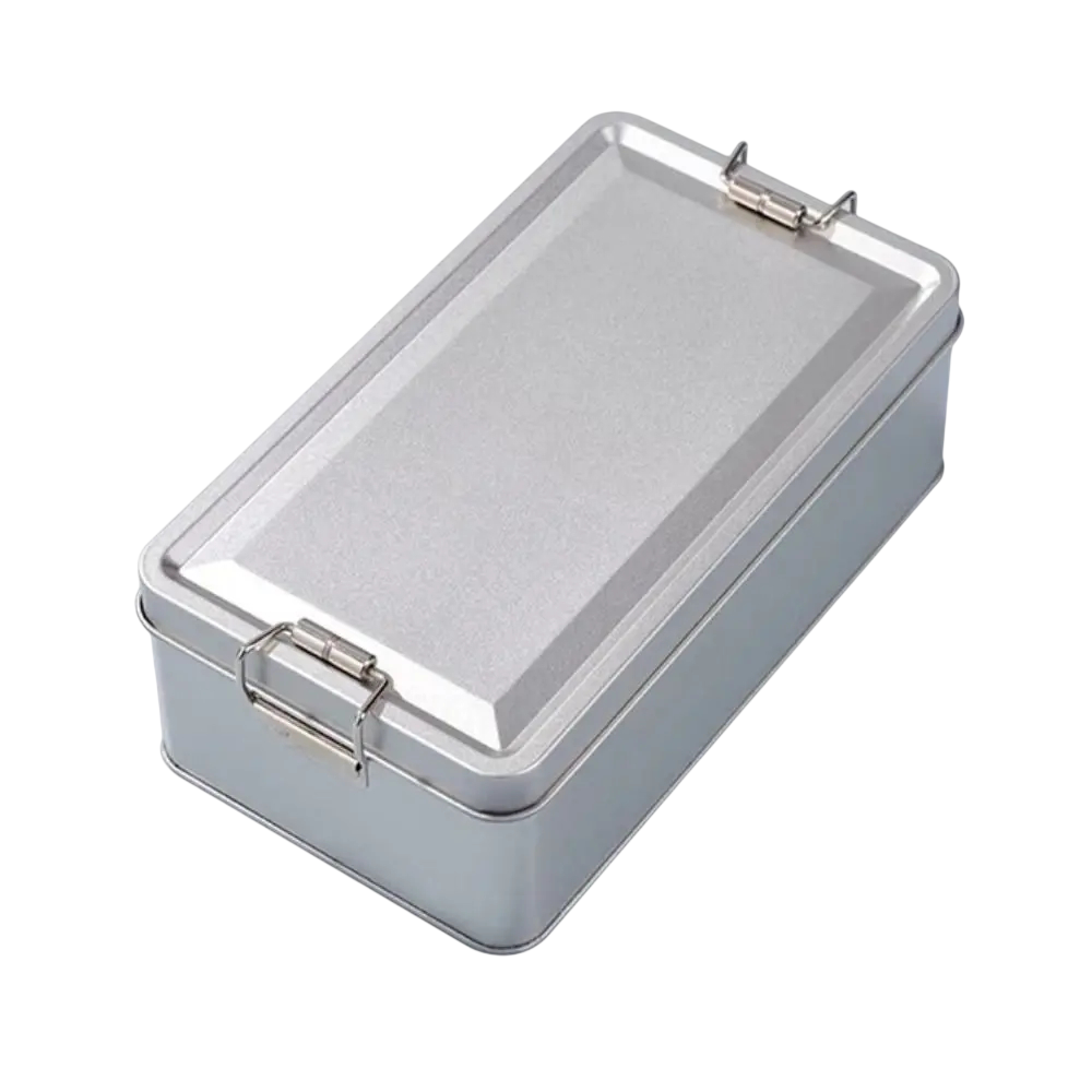Kovová obdélníková dóza s víkem je vhodná pro uchovávání sušenek, sladkostí nebo jiných drobných potravin. Díky svému tvaru poskytuje dostatek prostoru pro přehledné uspořádání obsahu. Víko je vybaveno klipovým uzávěrem, který pomáhá udržet dózu pevně uzavřenou. Krabičku lze využít nejen v kuchyni, ale i jako úložný box na drobnosti.