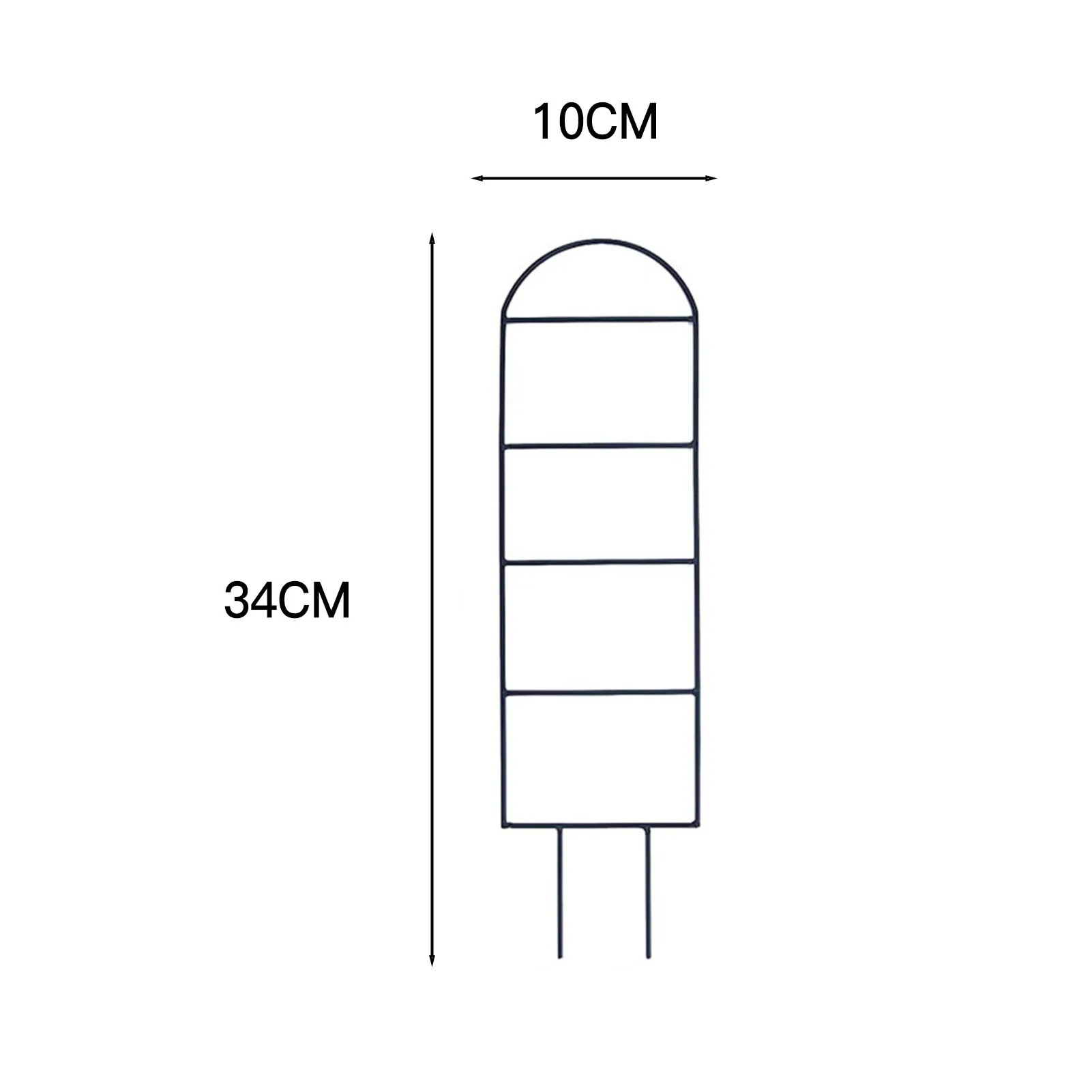 Kovová podpěra rostlin je určená pro pěstování popínavých druhů, které během růstu potřebují oporu a vedení. Tento zahradní stojan na popínavé rostliny má provedení s rovnými liniemi, díky kterému působí jednoduše a přehledně. Konstrukce je vhodná pro usměrnění výhonů a pro vytvoření stabilnější opory při růstu. Rozměr 34 × 10 cm odpovídá úzkému formátu, který se hodí do květináče i jiného pěstebního prostoru. Materiál kov zajišťuje pevné provedení pro běžné použití při péči o rostliny.