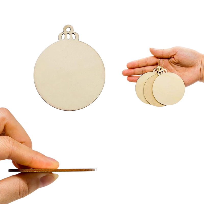 Kreativní sada 10 ks dřevěných vánočních koulí 8 x 8 cm Prázdné plátky k malování Závěsné ozdoby na stromeček