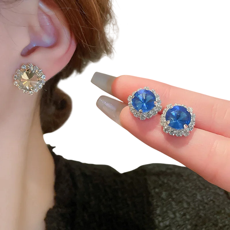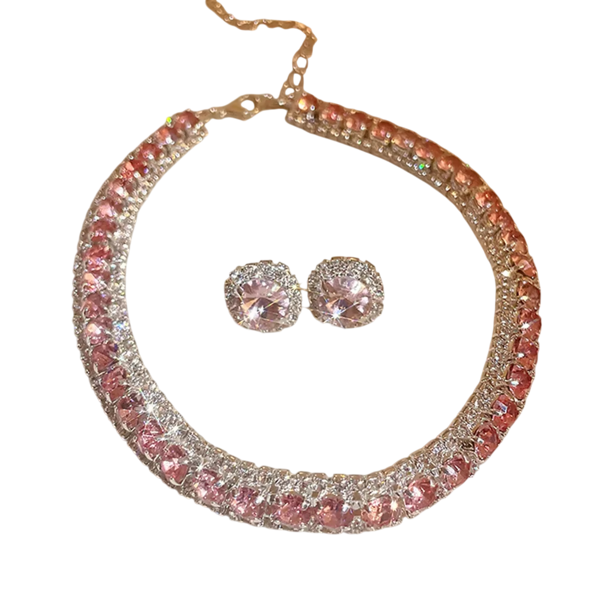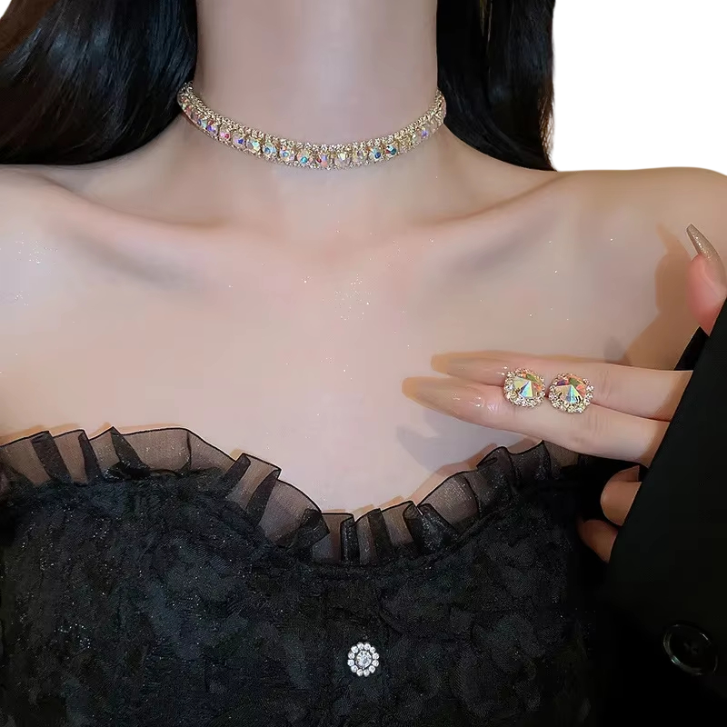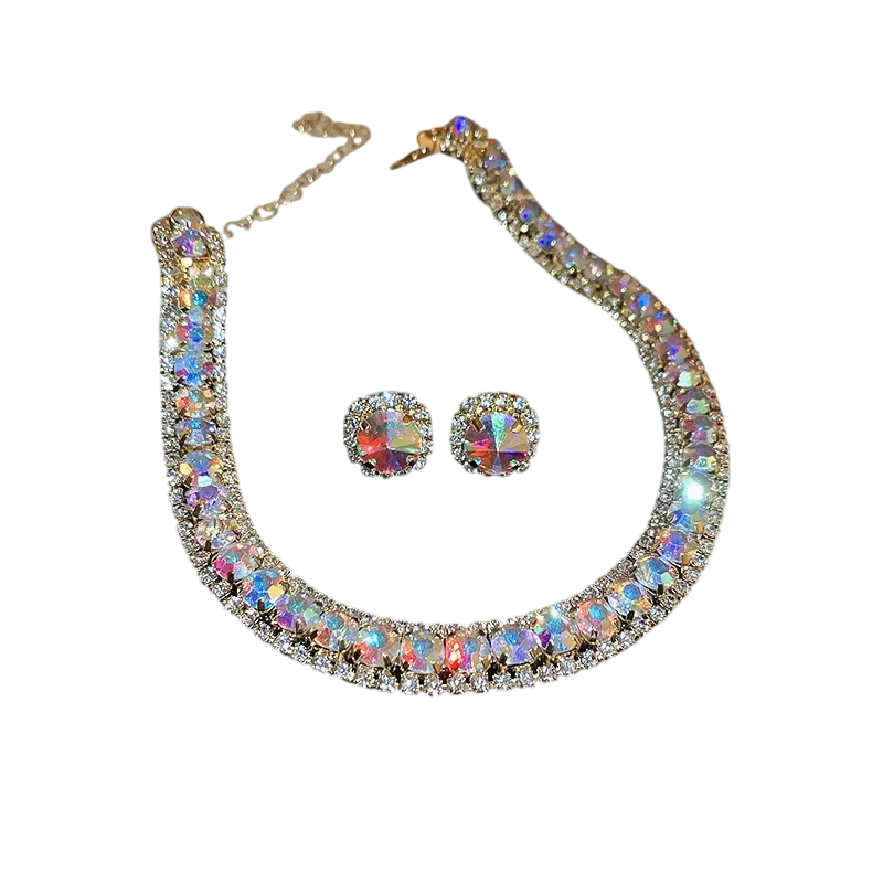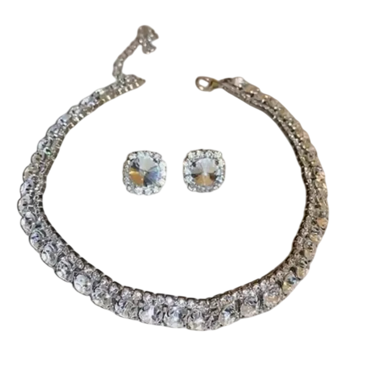 Křišťálový náhrdelník 42 cm a náušnice 1.4 cm Luxusní sada šperků pro ženy Svatební párty doplňky Zinková slitina
