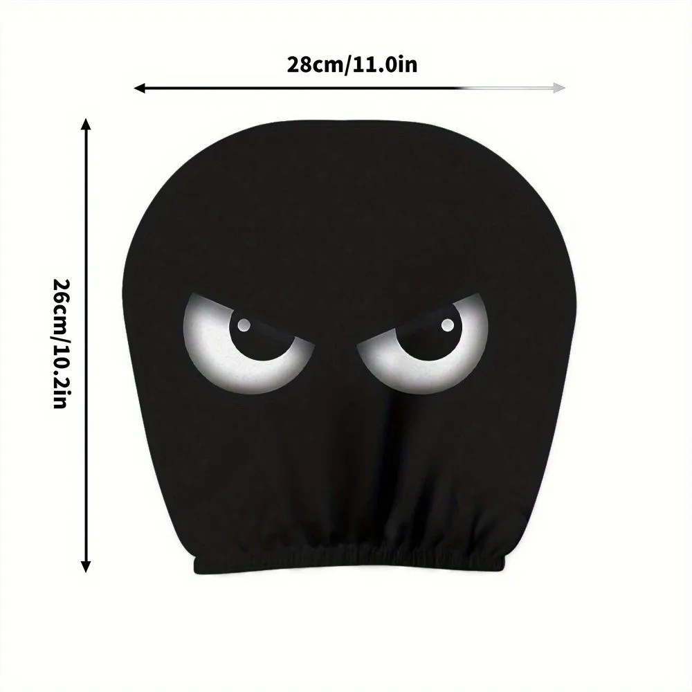 Dekorativní kryty na opěrky hlavy do auta 28 x 26 cm s motivem bílých očí na černém potahu. Sada 2 ks, vyrobeno z polyesteru, pro vylepšení interiéru vašeho vozidla. Celý popis