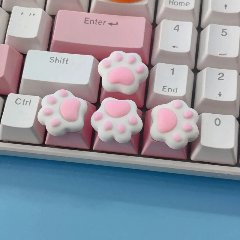 Ozdobné keycaps pro šipky klávesnice s motivem tlapky. 4 ks, PBT materiál a růžovo bílé provedení pro stylový vzhled stolu. Celý popis