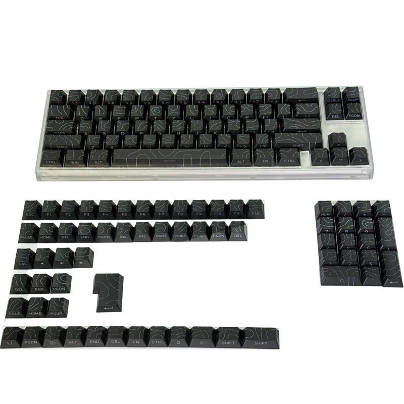 Kryty kláves konturové linie 133 ks PBT Cherry profil pro MX spínače RGB keycaps mechanická klávesnice topografický design
