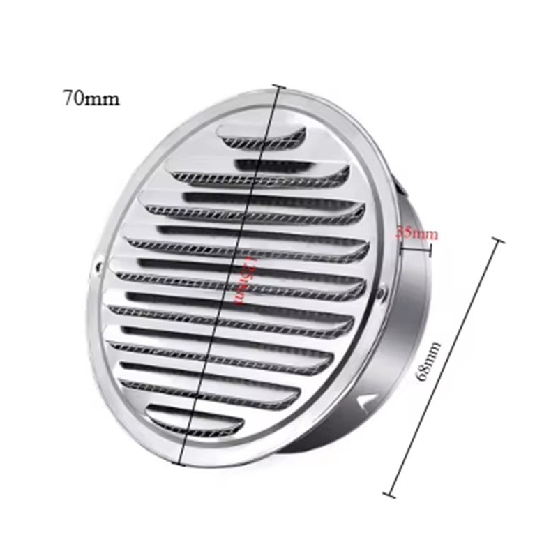 Tato kulatá větrací mřížka o průměru 70 mm s rozměry 68x125x35 mm je vyrobena z kvalitní nerezové oceli 201, která zajišťuje vysokou odolnost vůči vlhkosti, korozi i povětrnostním vlivům. Slouží k udržení přirozené cirkulace vzduchu mezi interiérem a exteriérem a zároveň brání vniknutí hmyzu a drobných škůdců díky integrované jemné síťce. Je ideální pro použití v domácnostech, kuchyních, koupelnách, technických místnostech i průmyslových prostorách. Díky svému elegantnímu nerezovému designu zapadne do každého typu prostředí a zůstává dlouhodobě funkční i při vystavení dešti nebo slunci.