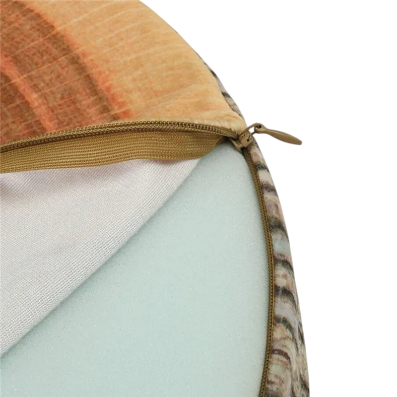 Kulatý polštář inspirovaný vzhledem řezu dřeva přináší do interiéru zajímavý vizuální prvek. Motiv letokruhů vytváří realistický efekt, který působí jako dekorativní doplněk do obývacího pokoje, ložnice nebo relaxační zóny. Díky svému tvaru se hodí nejen jako ozdoba, ale také jako praktický polštář pro každodenní použití.