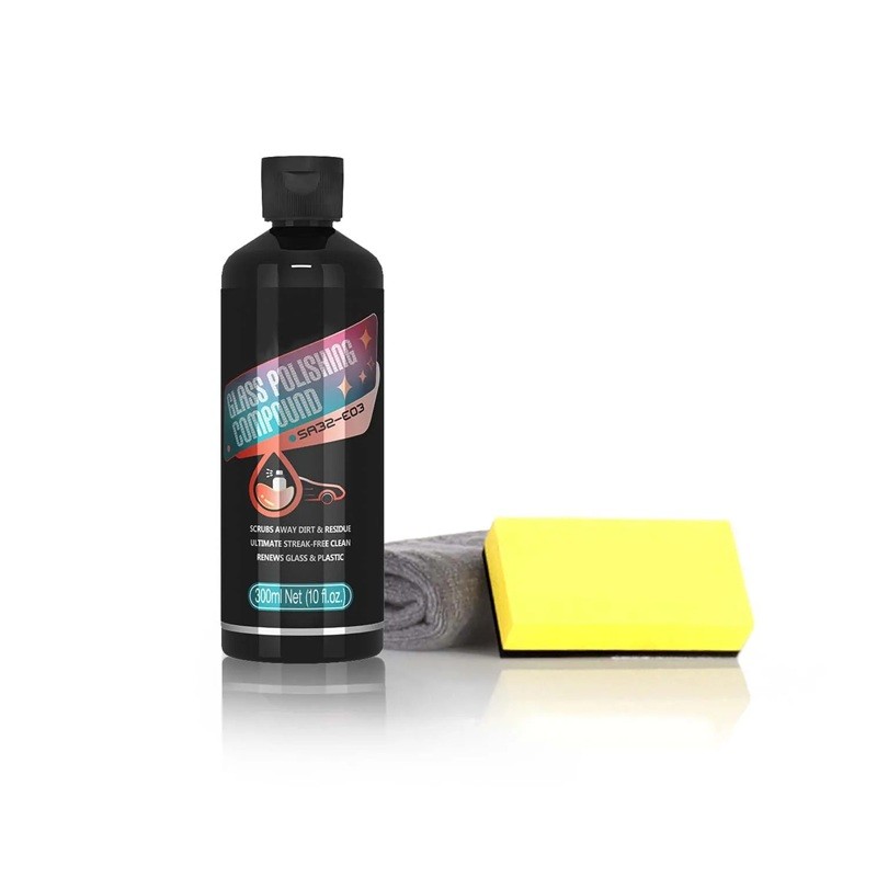 Lešticí pasta na sklo s houbičkou 300 ml bez silikonu hloubkový čistič odstraňovač olejového filmu černo-žlutá na autoskla