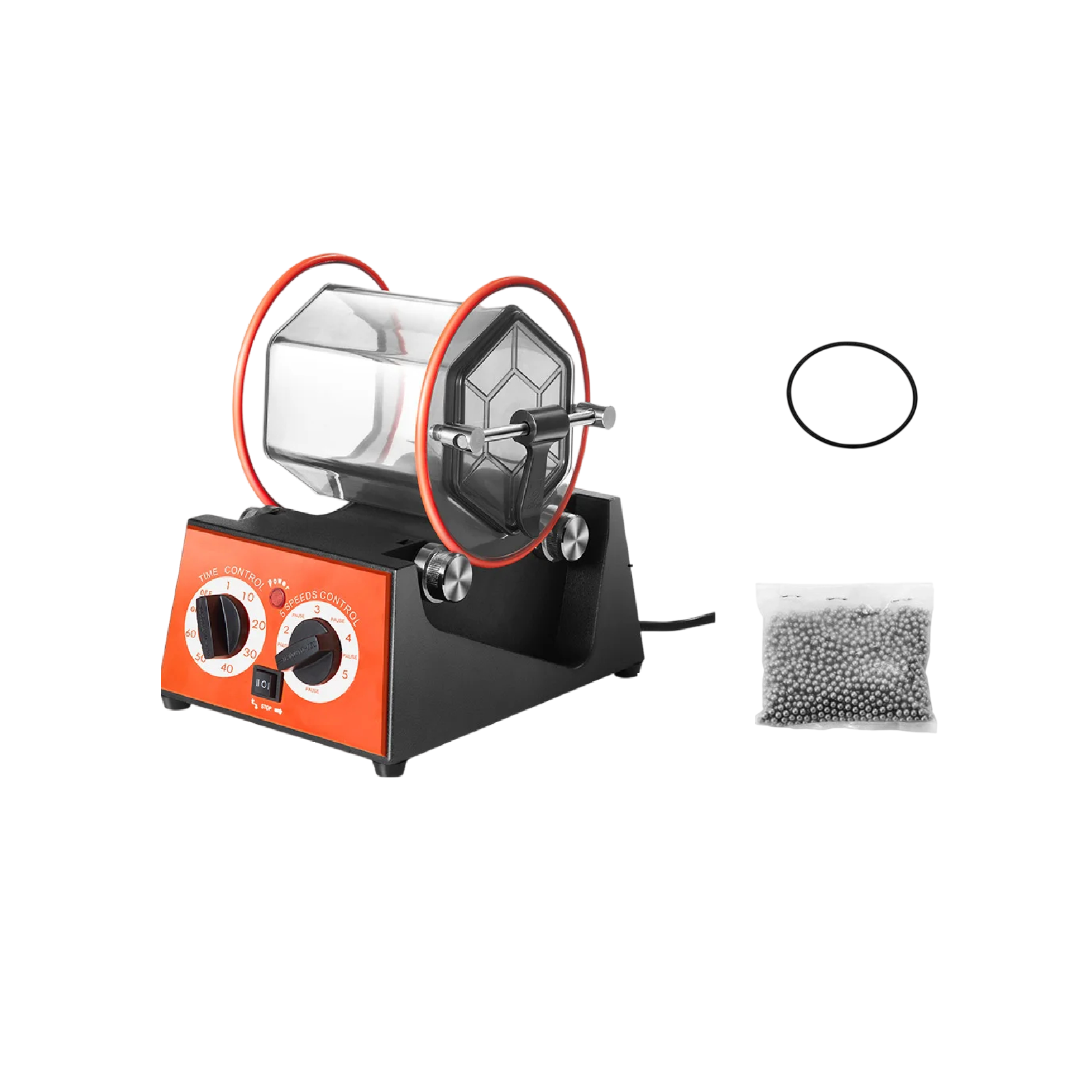 Leštička šperků a drahokamů je určena pro úpravu a leštění povrchů pomocí rotačního bubnu. Zařízení pracuje na principu otáčení nádoby, ve které dochází k rovnoměrnému opracování vloženého materiálu. Díky vyšší kapacitě 5 kg je vhodná pro větší množství šperků nebo kamenů. Stabilní konstrukce a přehledné ovládání usnadňují každodenní použití. Transparentní buben umožňuje sledovat průběh leštění bez nutnosti zastavení zařízení.