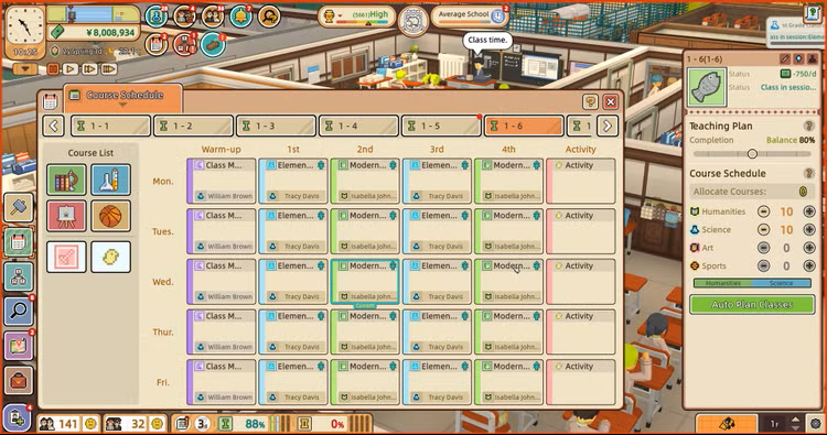 Osud učitelů a studentů závisí na řediteli ---- naverbujte, koho chcete, nacpat se nebo být flexibilnější je jen vaše volba. Rozvoj vašich učitelů odemkne jejich dovednosti, aby se vešli na různé pozice. Ředitel může studentům zorganizovat volitelné předměty, které ovlivní jejich náladu a kvalitu učení, což povede k tomu, že budou mít různé životní cesty.