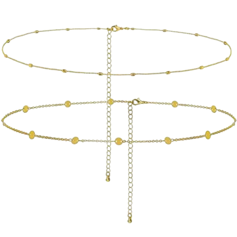 Dvouvrstvý tělový řetízek ve zlatém provedení zvýrazňuje pas, doplňuje letní a festivalové outfity a podtrhuje ženskou siluetu. Celý popis