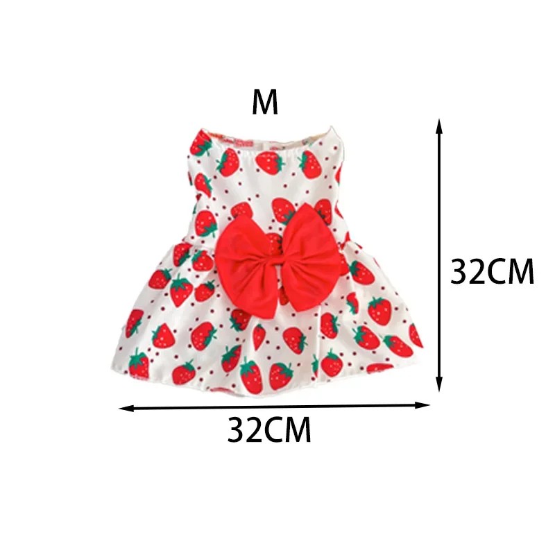 Letní šaty pro psy M 32 x 32 cm Roztomilé šaty se vzorem jahod Červená mašle Stylový prodyšný obleček pro malé psy Pohodlné letní oblečení
