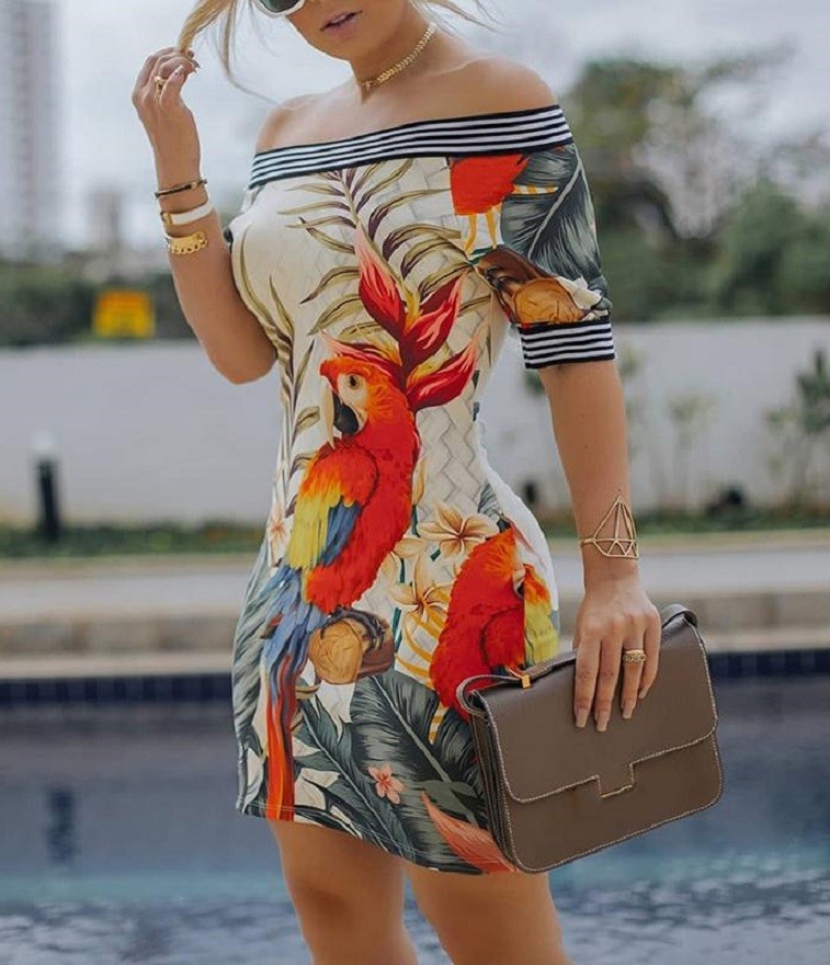Letní šaty s tropickým vzorem