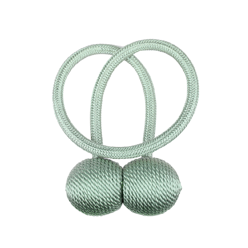 Magnetická spona na záclony s opleteným lankem 49 cm polyester a magnet dekorativní úchyt pro závěsy a záclony