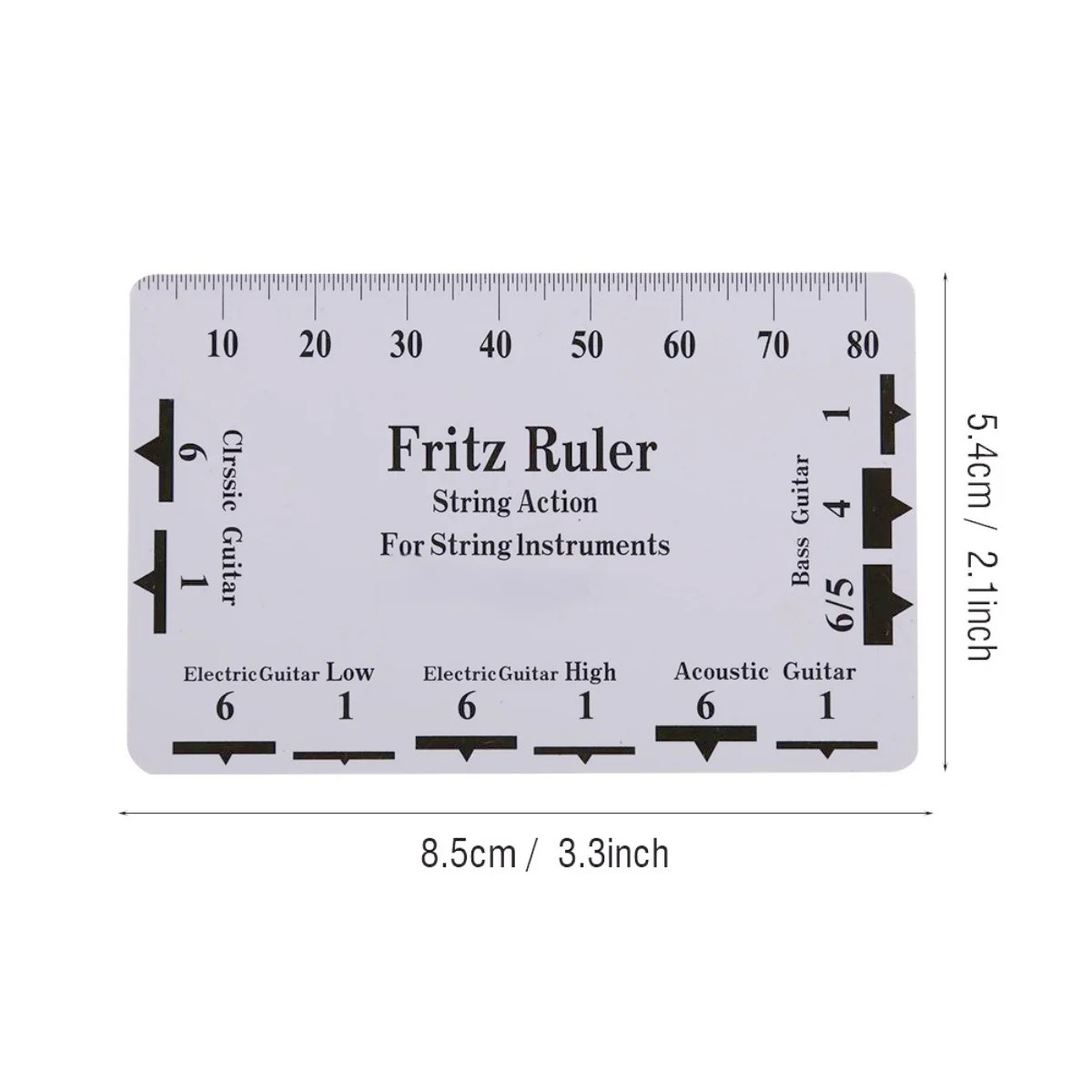 Měřidlo výšky kytarových strun 8,5 x 5,4 cm Oboustranné multifunkční PVC pravítko pro kytaru a baskytaru Karta se specifikacemi na hmatník a menzuru