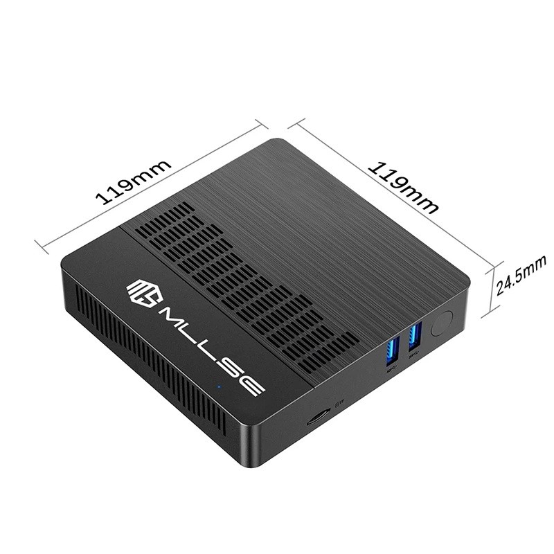 Tento kompaktní mini počítač MLLSE nabízí výkonný a přitom energeticky úsporný provoz v mimořádně malém těle o rozměrech 119 × 119 × 24,5 mm. Díky 6 GB RAM a rychlému 128 GB SSD disku zaručuje svižný chod systému, okamžitý start a pohodlnou práci s běžnými kancelářskými i multimediálními aplikacemi. Jeho design s efektivním pasivním chlazením umožňuje tichý provoz bez ventilátoru, což jej činí ideálním pro práci v kanceláři, domácí využití i zábavu.