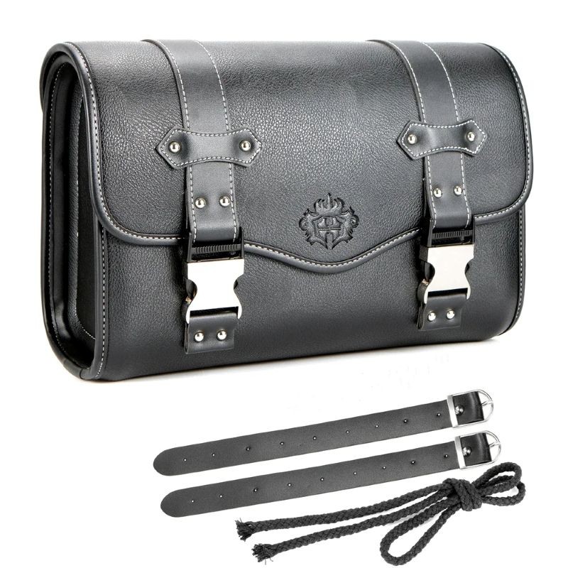 Brašna je vyrobena z PU kůže, která je odolná a zároveň vizuálně výrazná. Povrch je doplněn dekorativním prošíváním a kovovými prvky, které jsou patrné na obrázku. Uzavírání pomocí přezek pomáhá zajistit obsah během jízdy.