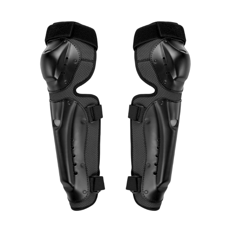 Chrániče jsou vybaveny pevnou ochrannou konstrukcí, která kryje koleno i část holeně. Tento typ provedení pomáhá rozložit sílu nárazu a snižuje riziko zranění při běžném použití. Tvarování je přizpůsobeno tak, aby chránilo důležité části nohy.