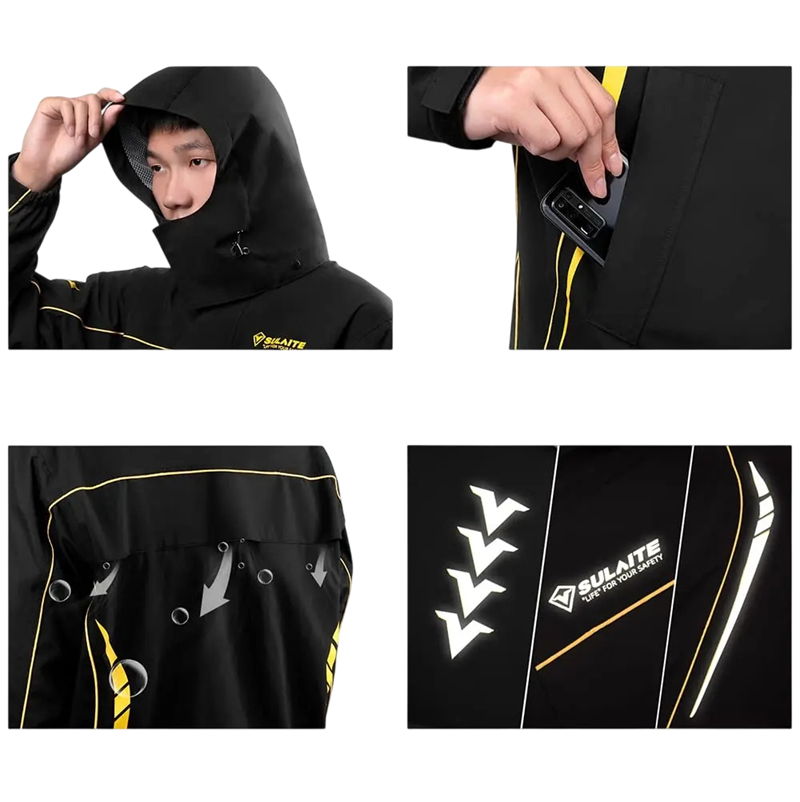 Pro lepší bezpečnost v silničním provozu je oblek vybaven 360° reflexními proužky umístěnými na hrudi, zádech a rukávech. Ty zvyšují viditelnost za deště, šera i snížených světelných podmínek. Nastavitelné manžety a lem umožňují přizpůsobení obleku motocyklovému oblečení a rukavicím, což přispívá k lepšímu komfortu během jízdy. Protipropustná konstrukce v oblasti zipu podporuje celkovou funkčnost při delším používání v nepříznivém počasí. Celek je navržen s ohledem na praktické potřeby motorkářů.