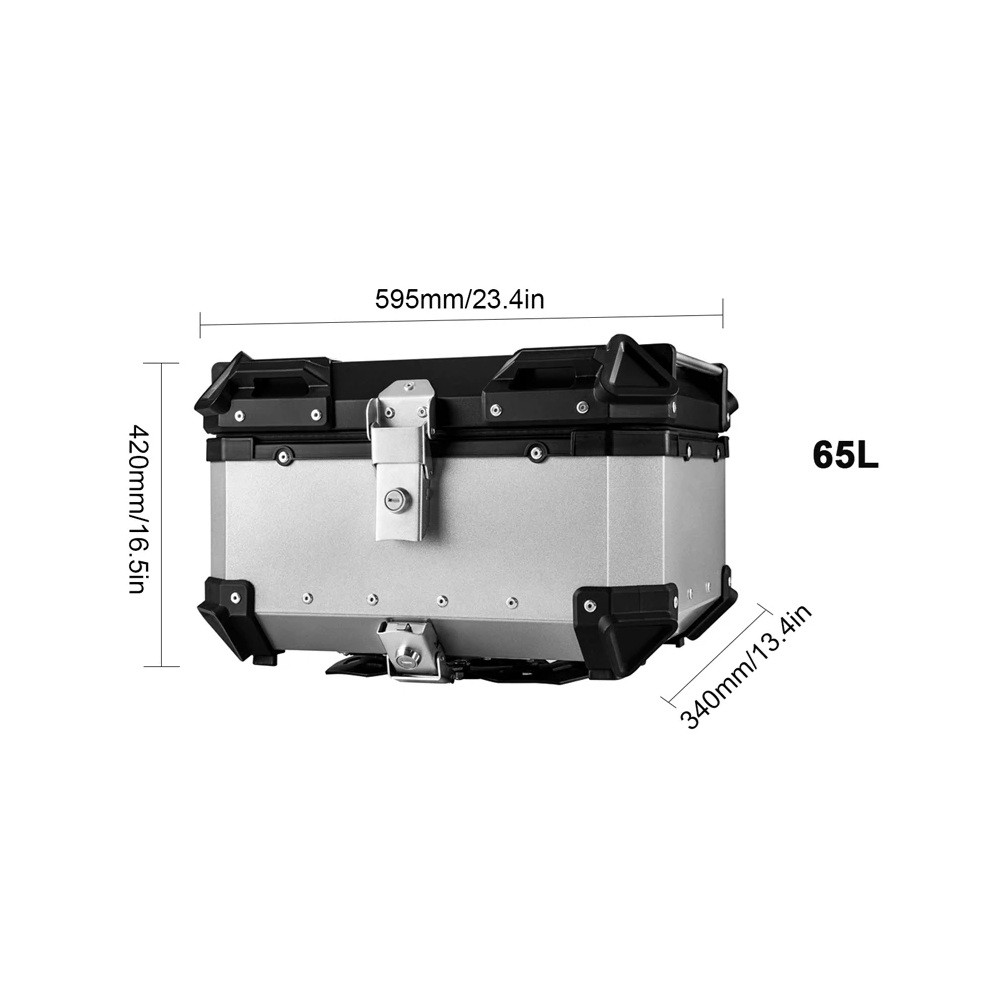 Motocyklový kufr 65L vodotěsný ABS úložný box 34 × 59 × 42 cm rychloupínací zadní kufr na motorku s klíči