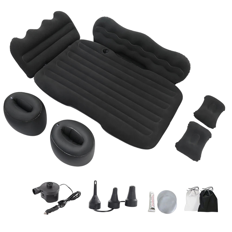 Nafukovací matrace do auta 128 x 77 x 12 cm Černá PVC + vločkování Ruční nafukování S opěrkami hlavy Chráničem a pumpou Cestovní sada