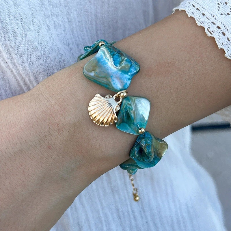 Úvodní strana Úvodní strana Šperky a Hodinky Dámské Dámské náramky Náramek s perleťovými články a přívěskem mušle, nepravidelné tvary, dámský náramek s mořským motivem