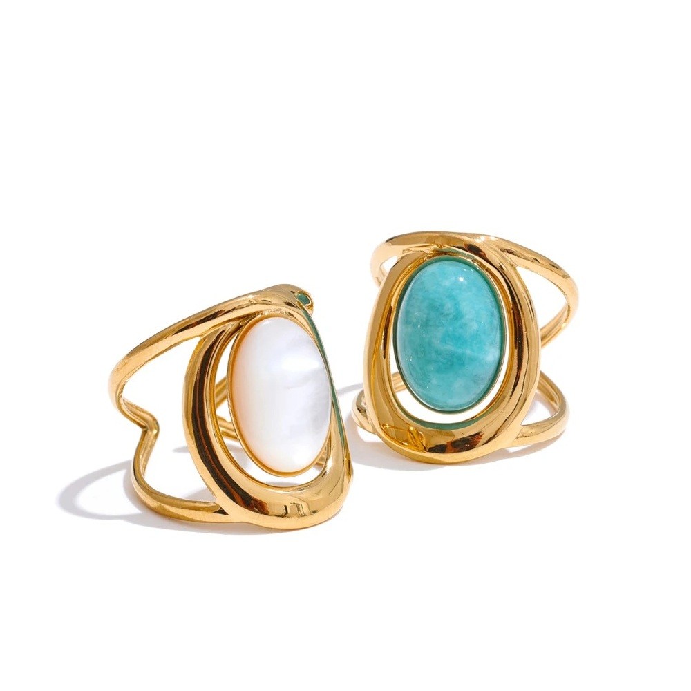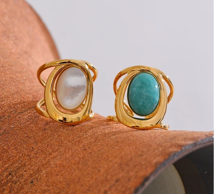 Výrazný nastavitelný prsten s oválným kamenem a dvojitou obroučkou, elegantní a výrazný doplněk vhodný pro každodenní i slavnostní styl. Celý popis